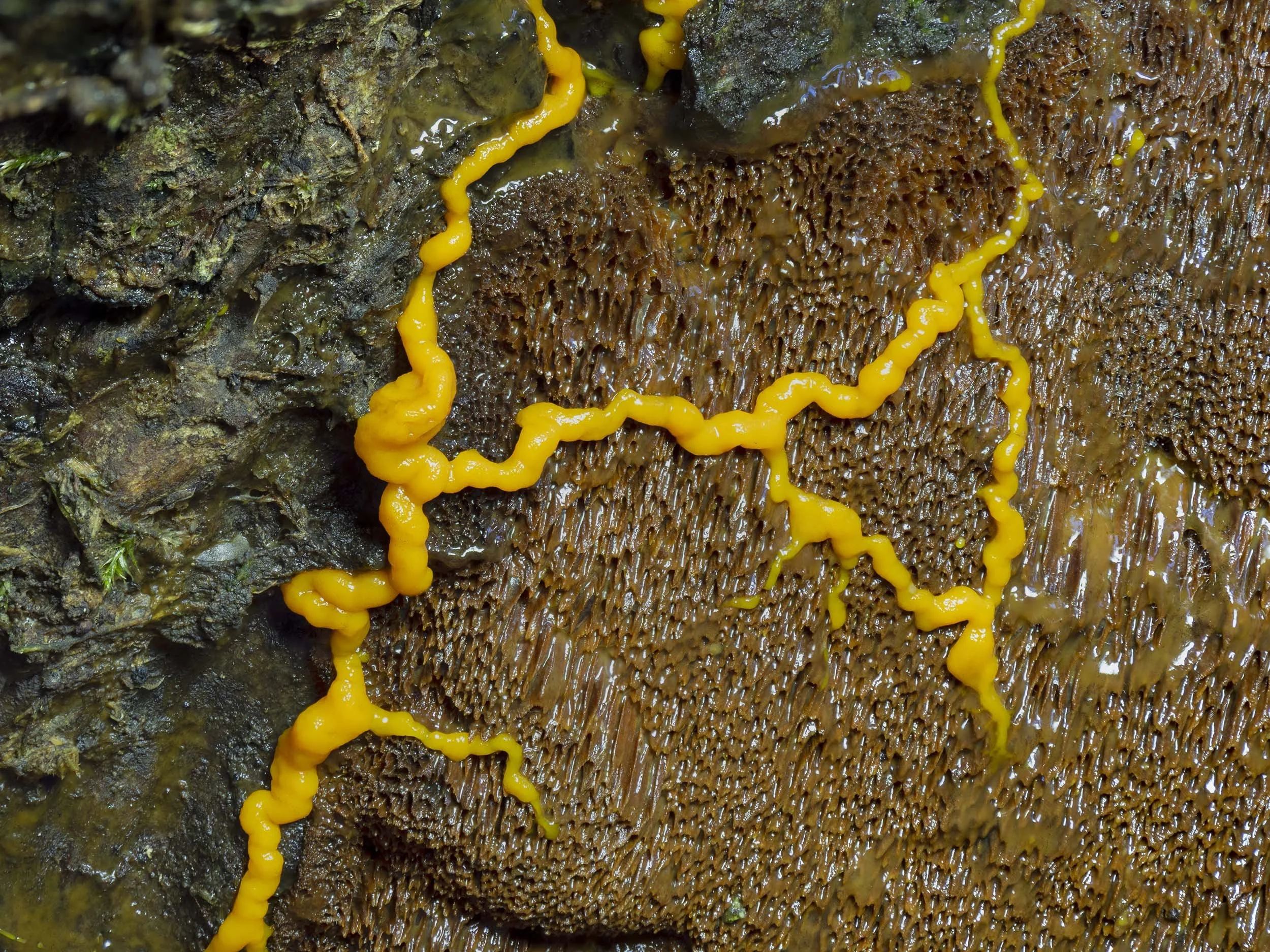 I also photographed some of the areas of the traveling B. utricularis plasmodia, before developing into the fruiting clumps. In one area it resembled melted cheese on top of a chocolate cake. Probably not a polar opposite taste combination that would take off in the same way that salted caramel did.