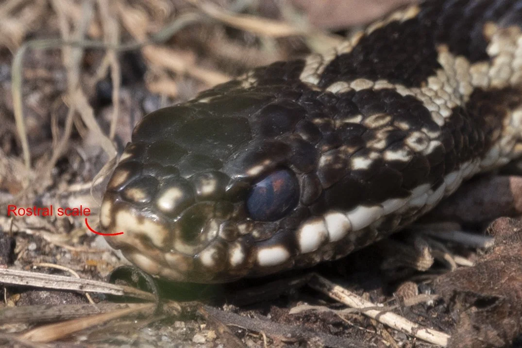 An image of Adder 51 from 2025 that illustrates the “fused” scale to the right of the rostral