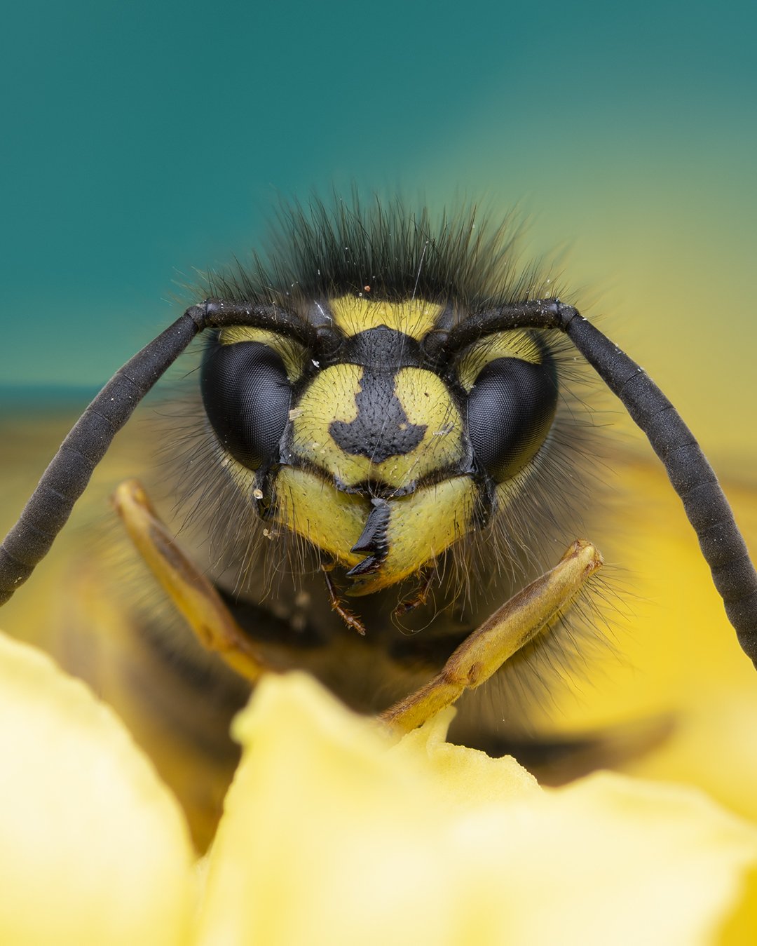 Photo 1 - I was lucky enough to not only get the perfect part of the eyes in focus but also directly head on, so they are both symmetrically focussed. I think you get the impression with where the legs are, that the wasp is walking towards you which helps give it quite an imposing presence. When I look at the photo, I can still hear the wasps and hornets that were constantly flying past my head as I took the shot. Not only that but it also reminds me of the conversations I had with a few people that passed me whilst I was taking photos. One couple were curious about what I was up to and were enquiring about my lighting set up and I had a more general wildlife chat with another couple which at one point involved crab spiders, like any decent conversation should.